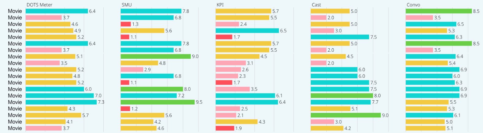 DOTS measures how a movie’s campaign is performing compared to its competitive set, adjusted for genre and timing.